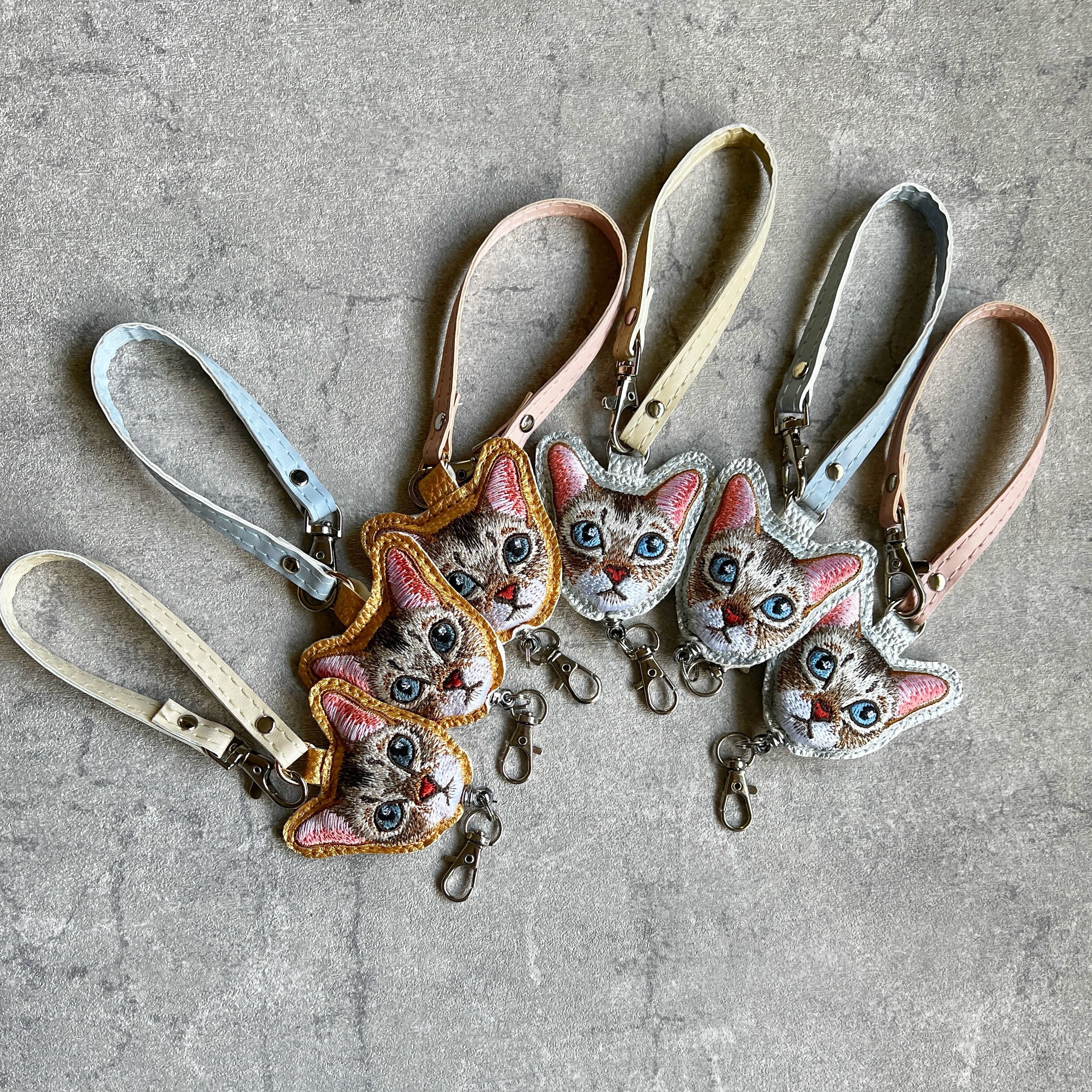 刺繍データから作りミシン刺繍で刺繍したシンガプーラのキーリールです。