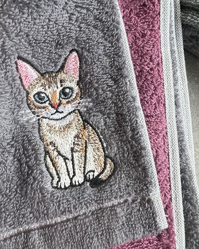 少しデフォルメしたシンガプーラの全身を刺繍しました。
