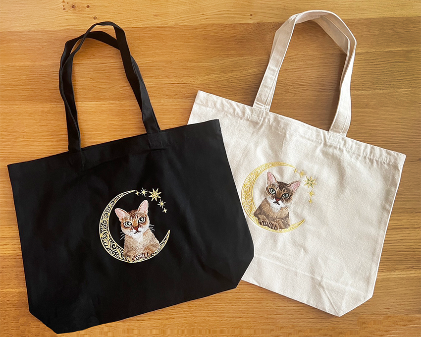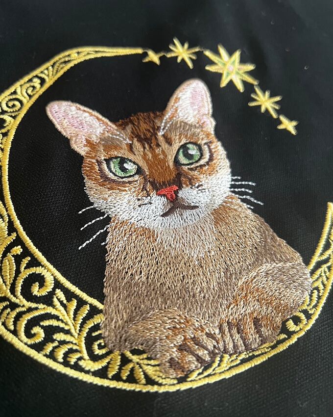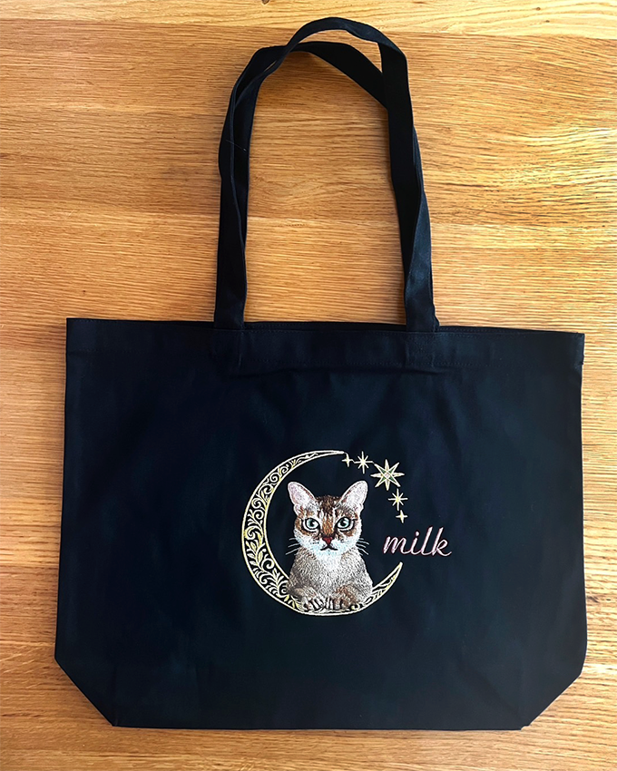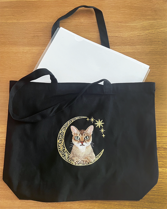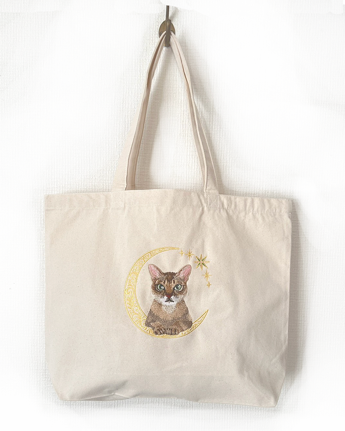 月と星のデザインとシンガプーラを刺繍したバッグです。